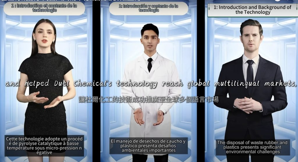 近期,智盈行銷協助美國環保技術公司 杜爾化工,打造了四位專屬數位代言人,針對美國本土、西班牙語系、法語系及中文市場,通過多語言演繹,生動展示其 低溫微負壓裂解技術 的核心優勢。數位代言人不僅幫助企業將技術資訊更高效地推向國際市場,還以簡潔清晰的內容形式,成功向包括 聯合國環保署 在內的國際機構傳遞技術價值,為企業與全球夥伴建立了堅固的溝通橋樑。